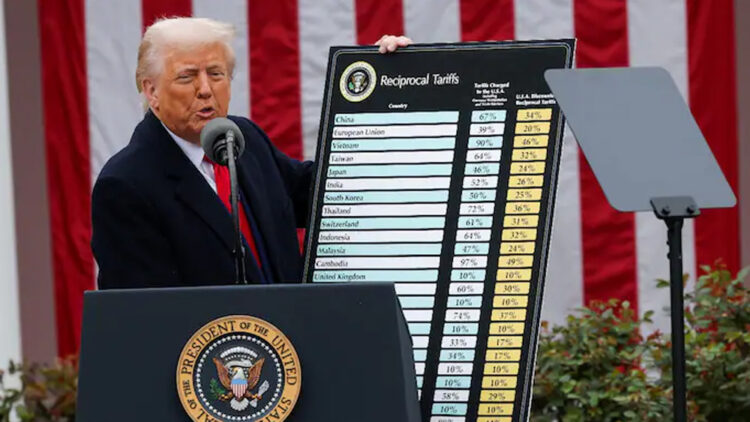 വൈറ്റ് ഹൗസിൽ നടന്ന പത്രസമ്മേളനത്തിൽ, ഇന്ത്യ ഉൾപ്പെടെയുള്ള രാജ്യങ്ങളുടെ പട്ടിക, അവയ്‌ക്ക് ചുമത്തേണ്ട പുതിയ തീരുവകൾ, രാജ്യങ്ങൾ അമേരിക്കയിൽ ചുമത്തുന്ന നിലവിലെ ലെവികൾ എന്നിവ കാണിക്കുന്ന ഒരു ചാർട്ട് ട്രംപ് പ്രദർശിപ്പിച്ചു. യുഎസ് ഇറക്കുമതിക്ക് ഇന്ത്യ 52 ശതമാനം തീരുവ ചുമത്തുന്നുവെന്ന് അദ്ദേഹം പറഞ്ഞു. ഏപ്രിൽ 9 ന് പുലർച്ചെ 12.01 ന് പകരം തീരുവ പ്രാബല്യത്തിൽ വരുമെന്ന് വൈറ്റ് ഹൗസ് അറിയിച്ചു.