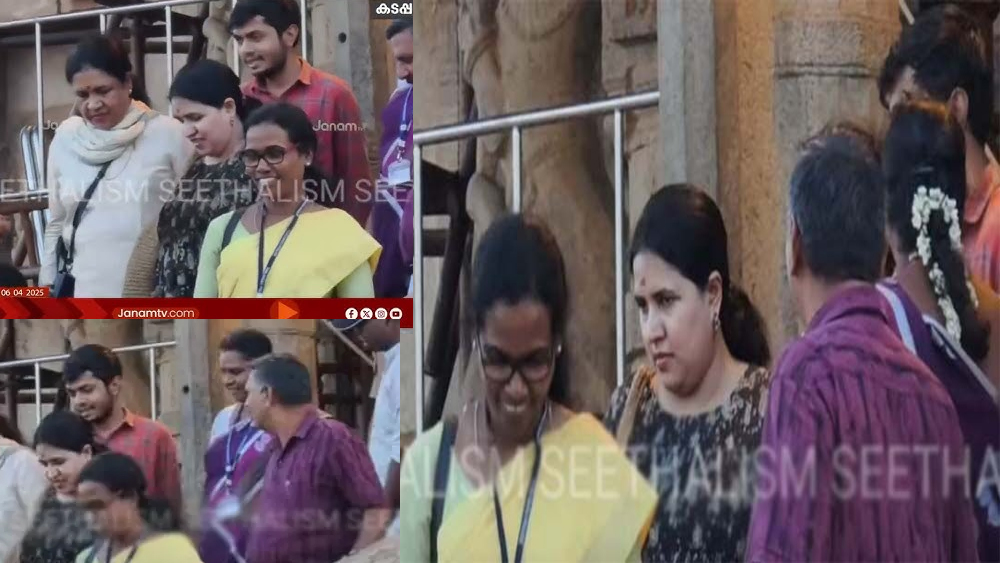 മധുര: സിപിഎം പാർട്ടി കോൺ​ഗ്രസിനിടെ തഞ്ചാവൂർ ക്ഷേത്രത്തിൽ ദർശനം നടത്തി മുഖ്യമന്ത്രി പിണറായി വിജയന്റെ ഭാര്യയും മകളും. ബൃഹദീശ്വര ക്ഷേത്രമാണ് വീണാ വിജയും കമലയും സന്ദർശിച്ചത്. പൊലീസ് സംരക്ഷണത്തിൽ ക്ഷേത്രത്തിലെത്തിയ ഇവരുടെ വീഡിയോ ഒരു യുട്യൂബ് ബ്ലോ​ഗറാണ് പുറത്തുവിട്ടത്.