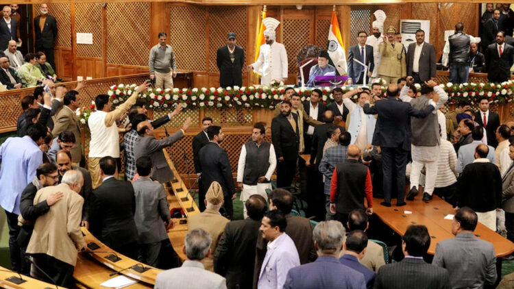 നിയമസഭയിൽ ഇത് മൂന്നാം ദിവസമാണ് ബഹളം പൊട്ടിപ്പുറപ്പെട്ടത്. വഖഫ് ഭേദഗതി നിയമം ചർച്ച ചെയ്യാൻ ഒരു താൽക്കാലിക പ്രമേയം അവതരിപ്പിക്കണമെന്ന് ആവശ്യപ്പെട്ട് പ്രതിപക്ഷ പാർട്ടികളും നാഷണൽ കോൺഫറൻസ് എംഎൽഎമാരും ഒന്നും രണ്ടും ദിവസങ്ങളിൽ സഭയിൽ പ്രതിഷേധം നടത്തി. എന്നാൽ, നിയമം കോടതിയിൽ ചോദ്യം ചെയ്യപ്പെട്ടിരിക്കുന്നതിനാൽ വിഷയം ലിസ്റ്റ് ചെയ്യാൻ സ്പീക്കർ വിസമ്മതിച്ചു.