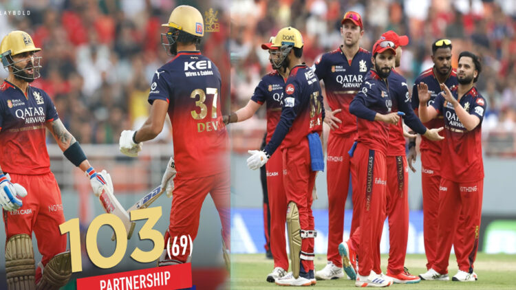 താരം 35 പന്തിൽ 61 റൺസാണ് നേടിയത്. നാല് സിക്സും അഞ്ചു ബൗണ്ടറിയും ഉൾപ്പടെയായിരുന്നുയിത്. ഒരു റണ്ണുമായി സാൾട്ട് പുറത്തായപ്പോൾ ക്രീസിലെത്തിയ പടിക്കൽ വിരാടുമായി 103 റൺസിന്റെ കൂട്ടുകെട്ടാണ് ഉയർത്തിയത്. അർദ്ധ സെഞ്ച്വറിയുമായി കോലിയും ആർ.സി.ബി വിജയത്തിൽ നിർണായക സംഭാവന നൽകി. 54 പന്തിൽ 73 റൺസെടുത്ത കോലി പുറത്താകാതെ നിന്നു.