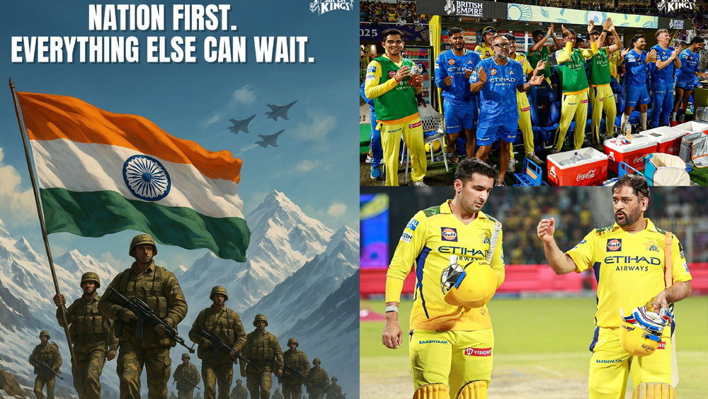 “ഒരോ ചുവടും സധൈര്യത്തോടെ, ഓരോ ഹൃദയമിടിപ്പിലും അഭിമാനം, നമ്മുടെ സൈന്യത്തിന് സല്യൂട്ട്”— എന്ന കുറിപ്പും ചെന്നൈ പങ്കിട്ട പോസ്റ്റിലുണ്ട്. പാകിസ്താന്റെ പ്രകോപനം തുടങ്ങിയതോടെ ധരംശാലയിൽ നടന്ന പഞ്ചാബ്-ഡൽഹി മത്സരം പാതിവഴിയിൽ ഉപേക്ഷിച്ചിരുന്നു. പിന്നീടാണ് ഐപിഎൽ താത്കാലികമായി നിർത്തിവയ്ക്കാൻ തീരുമാനമായത്. പാകിസ്താന്റെ ആക്രമണത്തിന് ഇന്ത്യ കനത്ത തിരിച്ചടിയാണ് ഇന്നും ഇന്നലെയുമായി നൽകിയത്. രാത്രി എട്ടോടെയാണ് പാകിസ്താന്റെ ഭാഗത്തുള്ള പ്രകോപനം രൂക്ഷമാകുന്നത്. ഇന്ത്യൻ സൈനിക കേന്ദ്രങ്ങളും ജമ്മു വിമാനത്താവളവും ജനവാസ മേഖലകളുമാണ് പാകിസ്താൻ ലക്ഷ്യം വച്ചത്.