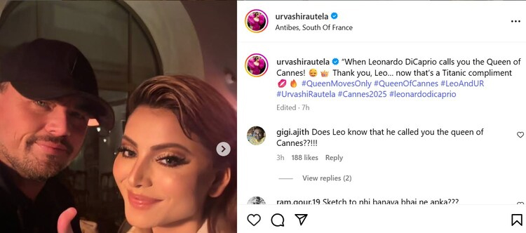 ടൈറ്റാനിക് നായകൻ എന്നെ കാൻസിലെ രാജ്ഞി എന്ന് വിളിച്ചു! ഉർവശി റൗട്ടേല, ഇത് ഡികാപ്രിയോ അറിഞ്ഞോ എന്ന് ട്രോൾ