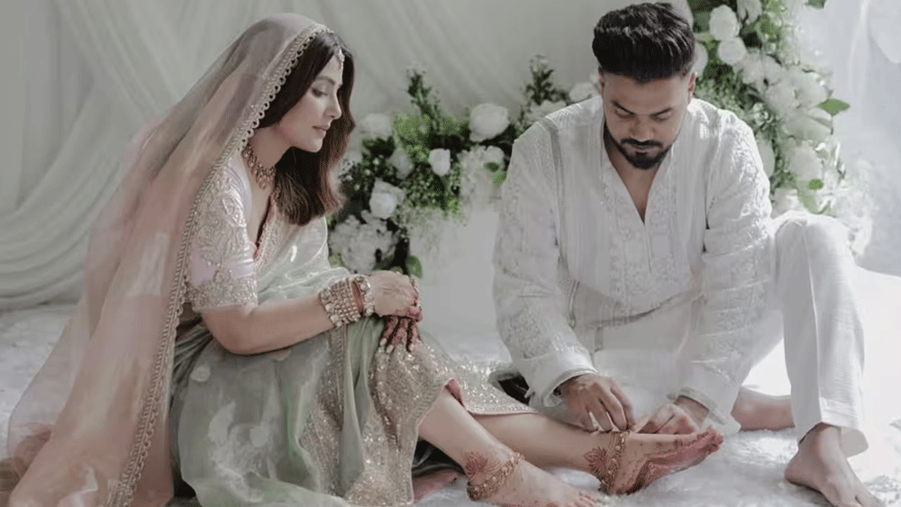 സാന്നിധ്യത്തിലാണ് ചടങ്ങുകൾ നടന്നത്. വിവാഹ ഫോട്ടോകൾ ഹിന സോഷ്യൽ മീഡിയയിൽ പങ്കുവച്ചിട്ടുണ്ട്. ‘എന്റെ ഉറ്റ സുഹൃത്ത്, എന്റെ ശക്തി, എന്റെ പ്രണയം, പ്രണയത്തിന്റെയും ചിരിയുടെയും സന്തോഷത്തിന്റെയും ഒരു ജീവിതകാലം ഇതാ. വാക്കുകൾക്കപ്പുറം അനുഗ്രഹീതമാണ്’ ഹിന കുറിച്ചു.