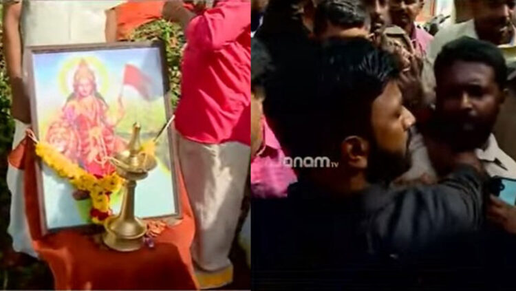 മന്ത്രി പി.പ്രസാദിന്റെ വീടിനുമുന്നിൽ ഭാരത് മാത പൂജ നടത്തി ബി ജെ പി പ്രവർത്തകർ