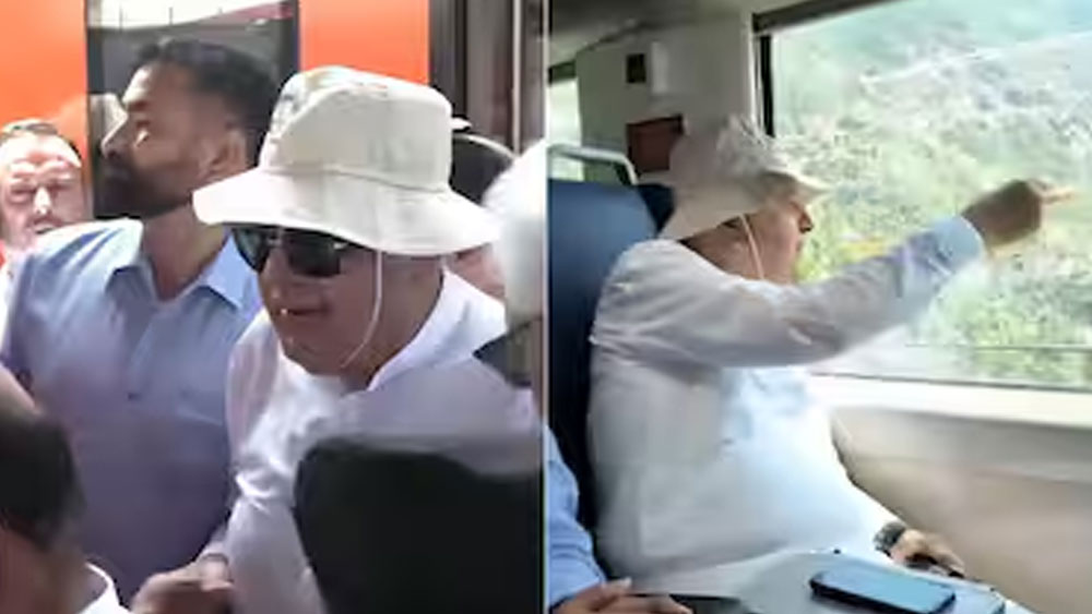 #WATCH | Srinagar, J&K: National Conference chief Farooq Abdullah travels on the Vande Bharat train from Nowgam Railway Station to Katra.