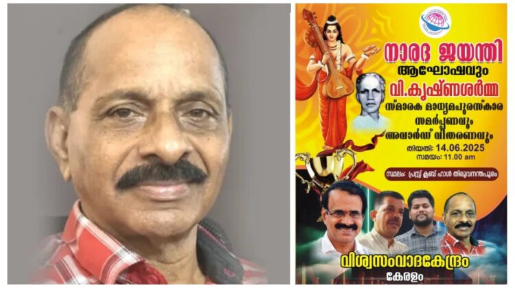 തിരുവനന്തപുരം: ജൂണ് 14ന് നാരദജയന്തിയോടനുബന്ധിച്ച് പ്രസ്ക്ലബില് സംഘടിപ്പിക്കുന്ന സമ്മേളനത്തില് മുതിര്ന്ന മാധ്യമ പ്രവര്ത്തകനും ജന്മഭൂമി റസിഡന്റ് എഡിറ്ററുമായ കെ. കുഞ്ഞിക്കണ്ണനെ വിശ്വസംവാദകേന്ദ്രം ആദരിക്കും.