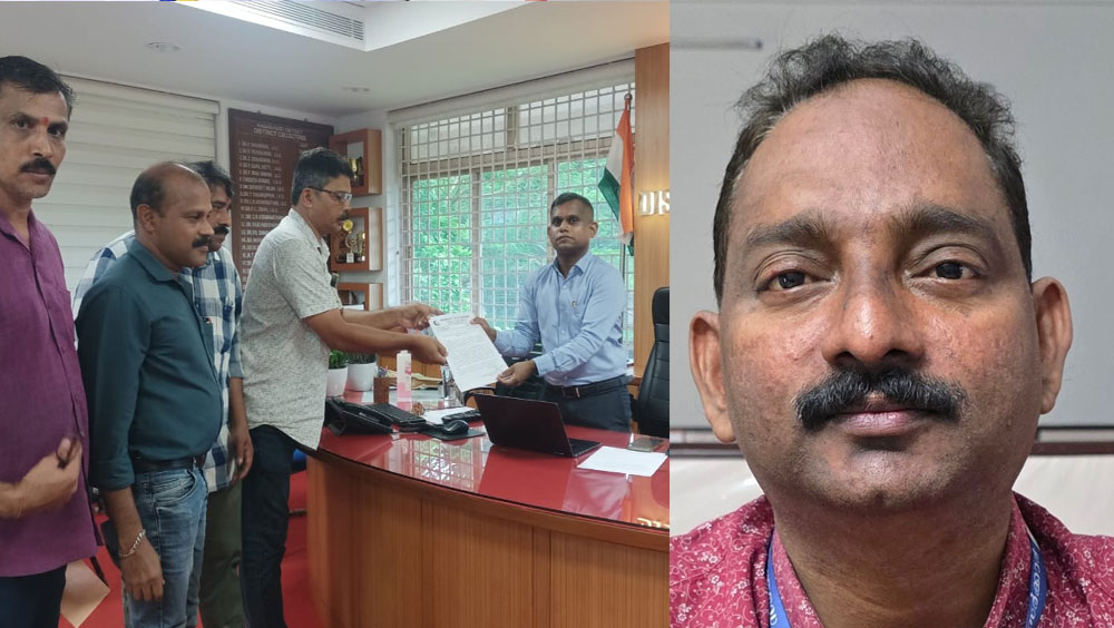 ഡെപ്യൂട്ടി തഹസിൽദാർ പവിത്രനെതിരെ നിയമ നടപടികൾ സ്വീകരിക്കണമെന്നാവശ്യപ്പെട്ട് കേരള എൻ.ജി.ഒ സംഘ് കാസർകോട് ജില്ലാ ഭാരവാഹികൾ ജില്ലാ കലക്ടർക്ക് പരാതി നൽകി.