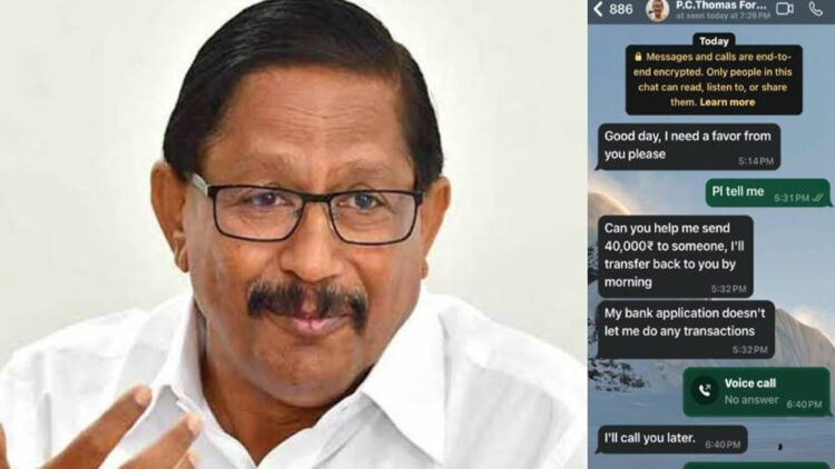 ‘40,000 രൂപയുടെ അത്യാവശ്യമുണ്ട്, നാളെ തിരിച്ച് തരാം’; പി. സി തോമസിന്റെ വാട്സ്ആപ്പ് ഹാക്ക് ചെയ്ത് പണം തട്ടിയെടുക്കാൻ ശ്രമം