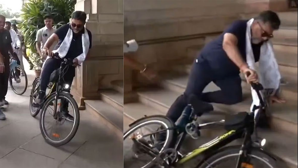 ഇലക്ട്രിക് സൈക്കിൾ പെട്ടെന്ന് മുന്നോട്ട് പോവുകയും മന്ത്രി പടിയിൽ വീഴുകയുമായിരുന്നു. അനുയായികൾ ഉടനെ പിടിച്ച് എഴുന്നേൽപ്പിച്ചെങ്കിലും വീഴ്ചയുടെ വീഡിയോ സോഷ്യൽ മീഡിയയിൽ വൈറലായി. ഇതോടെ ഉപമുഖ്യമന്ത്രി പല മീമുകളിലും ഇടംപിടിക്കുകയും ചെയ്തു.