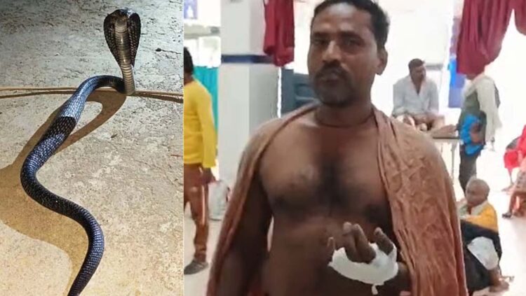 ഇത് പ്ലാസ്റ്റിക് കവറിലിട്ട് ആശുപത്രിയിലേക്ക് പോയതാണ് സംഭവം. വീടിന്റെ അറ്റകുറ്റ പണികൾ ചെയ്യുന്നതിനിടെയാണ് മൂർഖൻ കൈവിരലിൽ കടിച്ചത്. സിദ്ധപൂർ ഗ്രാമത്തിൽ ബുധനാഴ്ചയായിരുന്നു സംഭവം. രാം കിഷോർ ലോധ് എന്ന 32-കാരനാണ് അസാമാന്യ ധൈര്യം കാട്ടിയത്.പാമ്പിന്റെ കടിയേറ്റതിന് പിന്നാലെ ഒട്ടും പതറാതെ ബുദ്ധിപരമായ നീക്കത്തിനാണ് അദ്ദേഹം മുതിർന്നത്.
