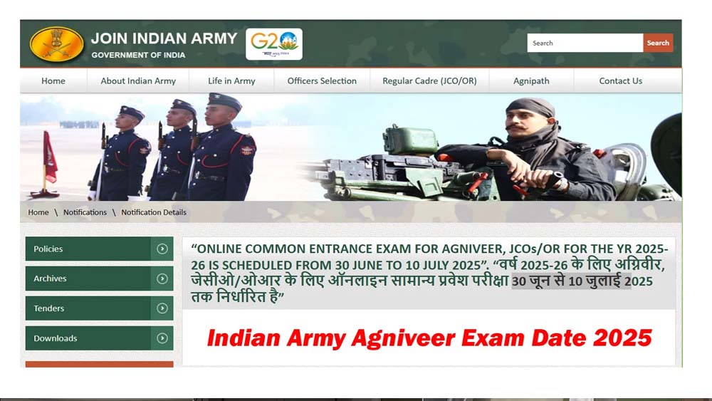 തിരുവനന്തപുരം: കരസേനയിൽ അഗ്നിപഥ് പദ്ധതി പ്രകാരം അഗ്നിവീർ റിക്രൂട്ട്മെന്റിനും, സ്ഥിരം വിഭാഗങ്ങൾക്കുമുള്ള ഓൺലൈൻ പൊതു പ്രവേശന പരീക്ഷ (CEE) 2025 ജൂൺ 30 മുതൽ ആരംഭിക്കുന്നതാണ്. പരീക്ഷയുടെ ഷെഡ്യൂൾ https://joinindianarmy.nic.in/ ൽ അപ്ലോഡ് ചെയ്തിട്ടുണ്ട്.