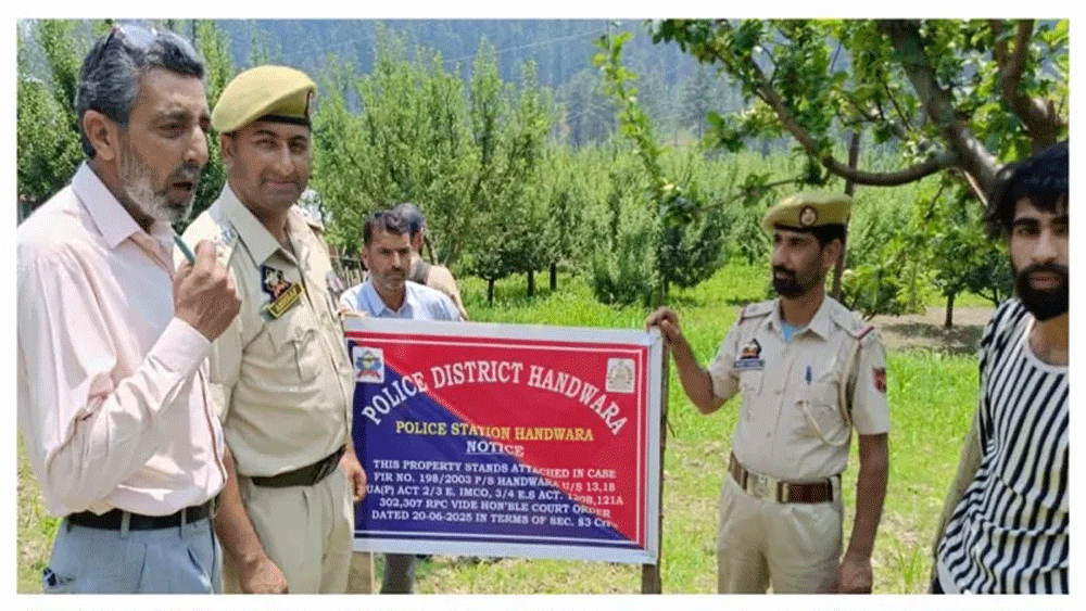 2003 ൽ ഭീകരർക്കെതിരെ ഹന്ദ്വാര ജില്ലാ പോലീസ് കേസ് രജിസ്റ്റർ ചെയ്ത കേസിലാണ് നടപടി. ക്രിമിനൽ നിയമത്തിലെ (സിആർപിസി) സെക്ഷൻ 83 പ്രകാരമാണ് സ്വത്ത് കണ്ടുകെട്ടൽ നടത്തിയത്.