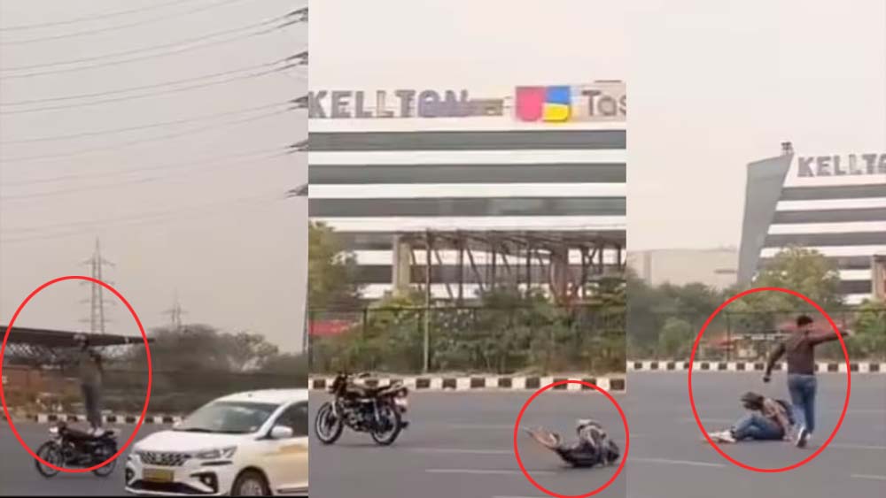 പാഞ്ഞെത്തിയ ബൈക്കിൽ നിന്ന് ഇയാൾ ബാലൻസ് തെറ്റി റോഡിൽ പതിച്ചു. ബൈക്ക് പിന്നെയും ഏറെ ദൂരെ മുന്നോട്ട് പോയി. ഇയാൾക്ക് റോഡിൽ വീണ് കാര്യമായ പരിക്കുകൾ പറ്റിയിട്ടുണ്ട്. റോഡ് യാത്രക്കാരിൽ ആരോ പകർത്തിയ വീഡിയോയാണ് സോഷ്യൽ മീഡിയയിൽ വൈറലായത്. ഞെട്ടിപ്പിക്കുന്നതാണ് വീഡിയോ. ഇയാൾക്കെതിരെ നടപടി ആവശ്യപ്പെട്ട് നിരവധി പേർ രംഗത്തുവന്നു. ജയിലിൽ ഇടണമെന്നും യുവാവിന് കടുത്ത പിഴ നൽകണമെന്നുമാണ് ഇവരുടെ ആവശ്യം. പൊലീസ് ഇക്കാര്യത്തിൽ നടപടി സ്വീകരിച്ചോ ഇല്ലയോ എന്ന കാര്യത്തിൽ വ്യക്തതയില്ല.