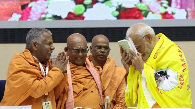 ഡൽഹി: ശ്രീനാരായണഗുരുദേവനും മഹാത്മാഗാന്ധിയും ശിവഗിരി മഠത്തില് നടത്തിയ കൂടിക്കാഴ്ചയുടെ ശതാബ്ദി ആഘോഷം ശിവഗിരി മഠത്തിന്റെ ആഭിമുഖ്യത്തിൽ ഡല്ഹി വിജ്ഞാന് ഭവനില് നടന്നു. രാവിലെ 9ന് രജിസ്ട്രേഷനെ തുടര്ന്ന് ശിവഗിരി മഠത്തിലെ സന്യാസി ശ്രേഷ്ഠര് നയിച്ച ജപം , ധ്യാനം, സമൂഹപ്രാര്ത്ഥന എന്നിവയ്ക്ക് ശേഷം ഗുരുദേവ കൃതികളുടെ സംഗീതാവിഷ്കാരവും നടന്നു. 11ന് പ്രധാനമന്ത്രി നരേന്ദ്രമോദി ശതാബ്ദി സമ്മേളനം ഉദ്ഘാടനം ചെയ്തു . ശിവഗിരി ശ്രീനാരായണധര്മ്മസംഘം ട്രസ്റ്റ് പ്രസിഡന്റ് സച്ചിദാനന്ദസ്വാമി അധ്യക്ഷത വഹിച്ചു.