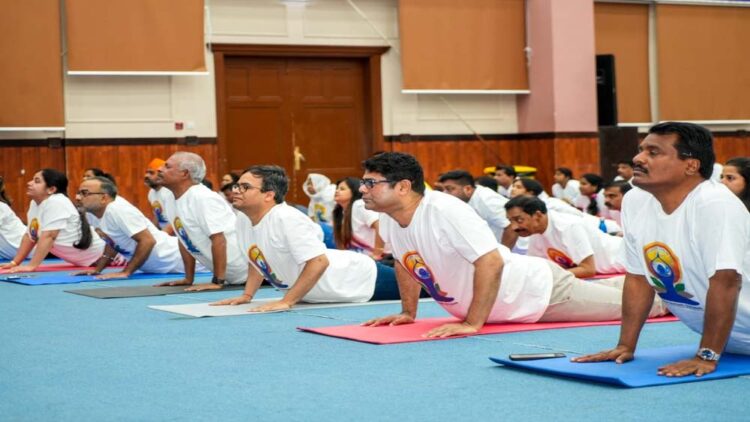 മനാമ: 11-ാമത് അന്താരാഷ്ട്ര യോഗ ദിനം ബഹ്റൈനിൽ ബഹ്റൈൻ കേരളീയ സമാജത്തിന്റെ ഡയമണ്ട് ജൂബിലി ഹാളിൽ ആഘോഷിച്ചു. ഇന്ത്യൻ എംബസിയുടെ നേതൃത്വത്തിൽ സംഘടിപ്പിച്ച പരിപാടി, “യോഗ ഫോർ വൺ എർത്ത്, വൺ ഹെൽത്ത്” എന്ന തീമിനെ അടിസ്ഥാനമാക്കി, ആരോഗ്യത്തിന്റെയും ഐക്യത്തിന്റെയും സന്ദേശം ഉയർത്തിക്കാട്ടി.