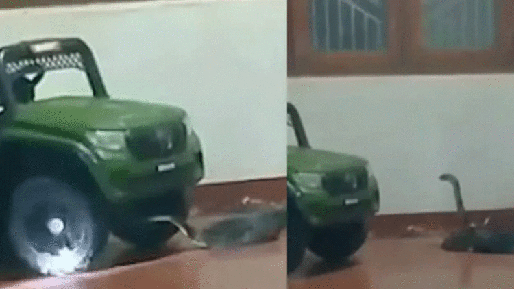 കണ്ണൂർ: ടോയ് കാറിന്റെ അടിയിൽ നിന്നും രാജവെമ്പാലയെ പിടികൂടി. ചെറുവാഞ്ചേരി സ്വദേശി ശ്രീജിത്തിന്റെ വീട്ടിൽ നിന്നാണ് പാമ്പിനെ പിടികൂടിയത്. ഇന്നലെ രാത്രി ഒമ്പത് മണിക്കാണ് സംഭവം. കുട്ടി ടോയ് കാർ ഓടിക്കാൻ എടുക്കുന്നതിനിടെയാണ് രാജവെമ്പാലയെ കണ്ടത്.
