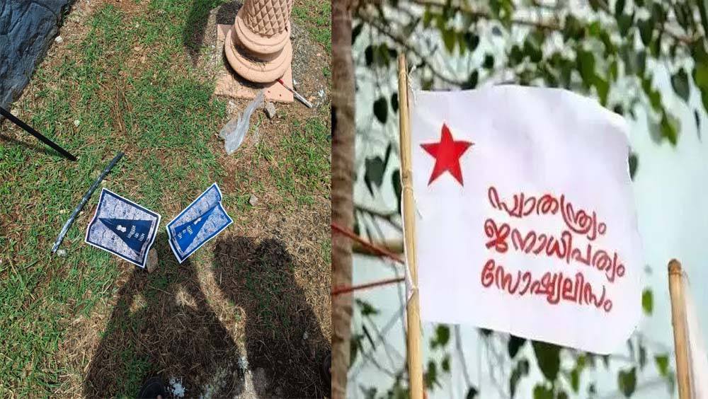സംഭവത്തിൽ പ്രതിഷേധവുമായി എബിവിപി രംഗത്തെത്തി. എസ് എഫ് ഐയുടെ പ്രവർത്തി ഭരണഘടനയോടുള്ള അവഹേളനം എന്ന് എബിവിപി ജില്ലാ സെക്രട്ടറി എസ് അശ്വിൻ പ്രസ്താവനയിൽ പറഞ്ഞു.