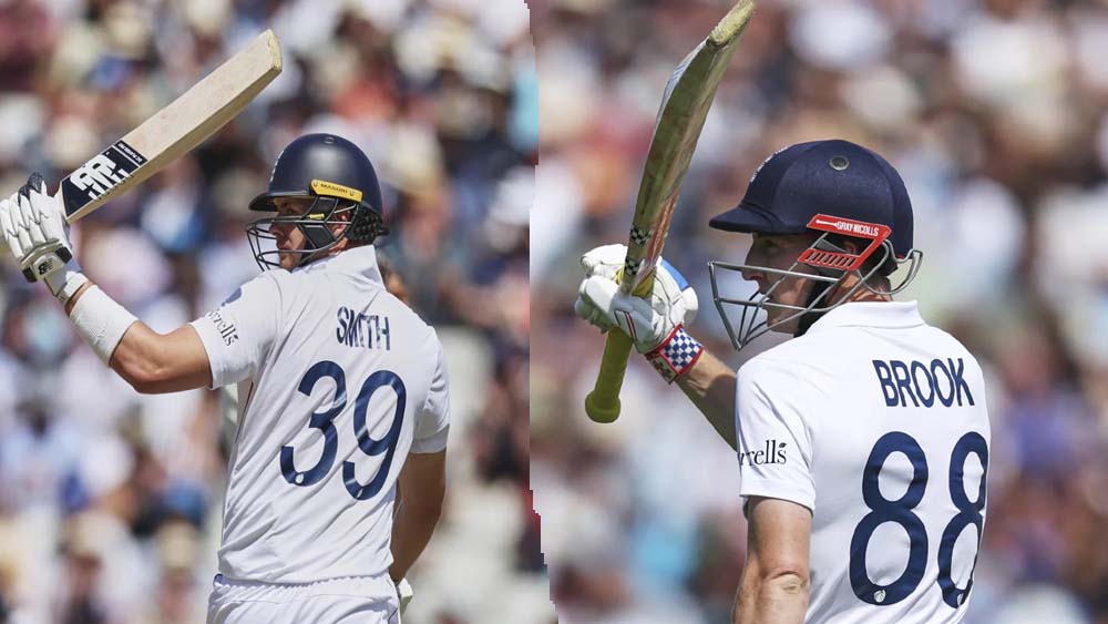 84/5 എന്ന നിലയിൽ ആതിഥേയർ തകർന്നപ്പോഴാണ് ബ്രൂക്കും സ്മിത്തും ക്രീസിൽ ഒരുമിക്കുന്നത്. ബാസ്ബോൾ ശൈലി പുറത്തെടുത്തപ്പോൾ എഡ്ജ്ബാസ്റ്റണിൽ ഇംഗ്ലണ്ട് ടോപ് ഗിയറിലായി. കൂട്ടത്തിൽ ഏറ്റവും അപകടകാരി ജാമി സ്മിത്താണ്. 73 പന്തിൽ 91 കടന്ന താരം സെഞ്ച്വറിയിലേക്ക് കുതിക്കുകയാണ്. മൂന്ന് സിക്സും 12 ബൗണ്ടറിയുമുണ്ട് ഇന്നിംഗ്സിൽ. 110 പന്തിൽ 80 റൺസ് പിന്നിട്ട ബ്രൂക്കിന്റെ പോക്കും സെഞ്ച്വറിയിലേക്ക് തന്നെ.(ഈ വാർത്ത പബ്ലിഷ് ചെയ്യും വരെയുള്ള വിവരം)
