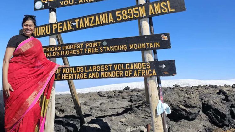 ചെന്നൈ: രാജ്യത്തിന്റെ പാരമ്പര്യവും സംസ്കാരവും നെഞ്ചിലേറ്റി ആഫ്രിക്കയിലെ ഏറ്റവും ഉയരം കൂടിയ കൊടുമുടി കീഴടക്കി ചെന്നൈ സ്വദേശിയായ യുവതി. ദന്ത ഡോക്ടറായ ഇസ ഫാത്തിമ ജാസ്മിനാണ് സാരിയുടുത്ത് കിളിമഞ്ചാരോ കൊടുമുടി കയറിയത്.