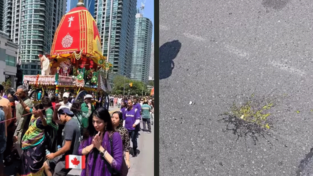 ഇസ്കോണിന്റെ 53-ാമത് വാർഷിക രഥയാത്രയാണ് ടൊറന്റോയിൽ നടന്നത്. രഥയാത്ര കടന്നു പോകുന്നതിനിടെ സമീപത്തെ ഫ്ലാറ്റുകളിൽ നിന്നും മുട്ടയറിയുന്ന ദൃശ്യങ്ങൾ പുറത്തുവന്നിട്ടുണ്ട്. ഇതിനെതിരെ ആഗോള തലത്തിൽ വൻ പ്രതിഷേധം ഉയരുന്നുണ്ട്.