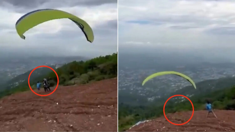 തിങ്കളാഴ്ച കാംഗ്ര ജില്ലയിലെ ധർമ്മശാലയ്‌ക്കടുത്തുള്ള ഇന്ദ്രു നാഗ് പാരാഗ്ലൈഡിംഗ് സൈറ്റിലാണ് സംഭവം. 10 സെക്കൻഡ് ദൈർഘ്യമുള്ള വീഡിയോയിൽ, ഒരു ജീവനക്കാരൻ വിനോദസഞ്ചാരിയെയും പൈലറ്റിനെയും പാരാഗ്ലൈഡറിൽ കയറ്റി കുന്നിൽ ചരിവിന്റെ താഴേക്ക് വിടുന്നത് കാണാം. എന്നാൽ പാരാഗ്ലൈഡർ പറന്നുയർന്ന് നിമിഷങ്ങൾക്കുള്ളിൽ തൊട്ടടുത്ത പാറക്കെട്ടിൽ ഇടിച്ച് താഴേക്ക് പതിക്കുകയായിരുന്നു.