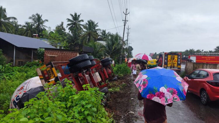 മംഗലാപുരത്ത് നിന്നും കോയമ്പത്തൂരിലേക്ക് പോയ ലോറി ആണ് മറിഞ്ഞത്.വാതക ചോർച്ച ഇല്ലെന്നു അധികൃതർ വ്യക്തമാക്കി.