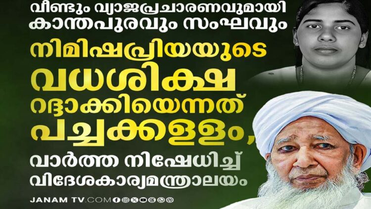 വ്യാജപ്രചാരണവുമായി കാന്തപുരവും സംഘവും; നിമിഷപ്രിയയുടെ വധശിക്ഷ റദ്ദാക്കിയെന്നത് പച്ചക്കള്ളം; വാദങ്ങള്‍ തള്ളി കേന്ദ്രസർക്കാർ