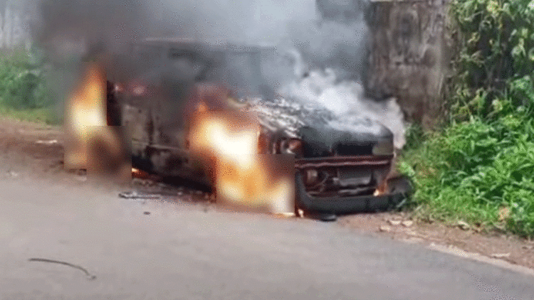 കൊല്ലത്ത് കാര്‍ തടഞ്ഞു നിര്‍ത്തി ആക്രമണം; വാഹനം തീയിട്ട് സംഘം രക്ഷപ്പെട്ടു