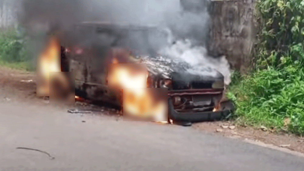 കൊല്ലത്ത് കാര്‍ തടഞ്ഞു നിര്‍ത്തി ആക്രമണം; വാഹനം തീയിട്ട് സംഘം രക്ഷപ്പെട്ടു