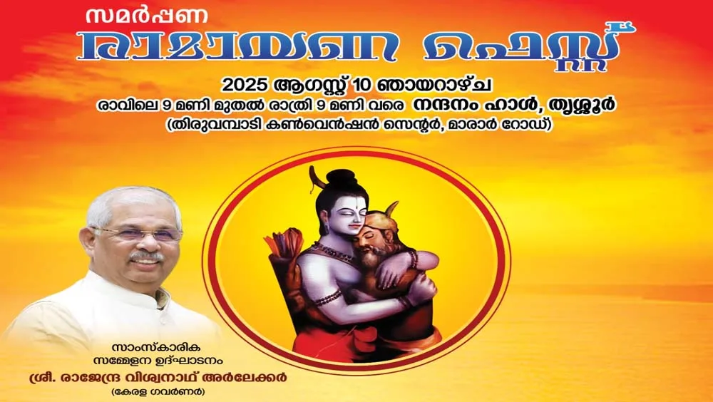 സമർപ്പണ ട്രസ്റ്റിന്റെ രാമായണ ഫെസ്റ്റ് 2025 ഓഗസ്റ്റ് 10 ഞായറാഴ്ച: കേരള ഗവർണർ രാജേന്ദ്ര വിശ്വനാഥ് ആർലേക്കർ പങ്കെടുക്കും