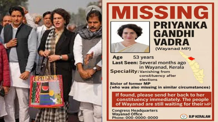 വയനാട് എം. പിക്കായി കേരള ബിജെപി ഘടകം ലുക്ക് ഔട്ട് നോട്ടീസ് പുറത്തിറക്കിയിരിക്കുകയാണ്. എംപി മണ്ഡലത്തിലേക്കൊന്ന് തിരിഞ്ഞ് നോക്കിയിട്ട് മാസങ്ങളായി. സഹോദരൻ രാഹുലിന് സമാന സ്വഭാവമായിരുന്നു. അഞ്ച് വർഷത്തിനിടെ രാഹുൽ വയനാട് എത്തിയത് വിരലിൽ എണ്ണാവുന്ന തവണ മാത്രമാണ്. മണ്ഡലത്തിന്റെ വികസനമോ ജനങ്ങളുടെ പ്രശ്നമോ ഒന്നും സഹോദരനും സഹോദരിക്കും വിഷയമല്ല. എന്നാൽ ഗാസയിൽ ഭീകരൻ കൊല്ലപ്പെടുന്നത് ഇരുവർക്കും വലിയ പ്രശ്നമാണ്.