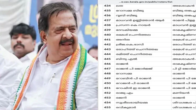 രമേശ് ചെന്നിത്തലയ്‌ക്കും ഭാര്യയ്‌ക്കും മക്കൾക്കും ഇരട്ടവോട്ട്; ചെന്നിത്തല – തൃപ്പെരുംതുറ പഞ്ചായത്തിലും ഹരിപ്പാട് മുൻസിപ്പാലിറ്റിയിലും വോട്ടെന്ന് ആരോപണം