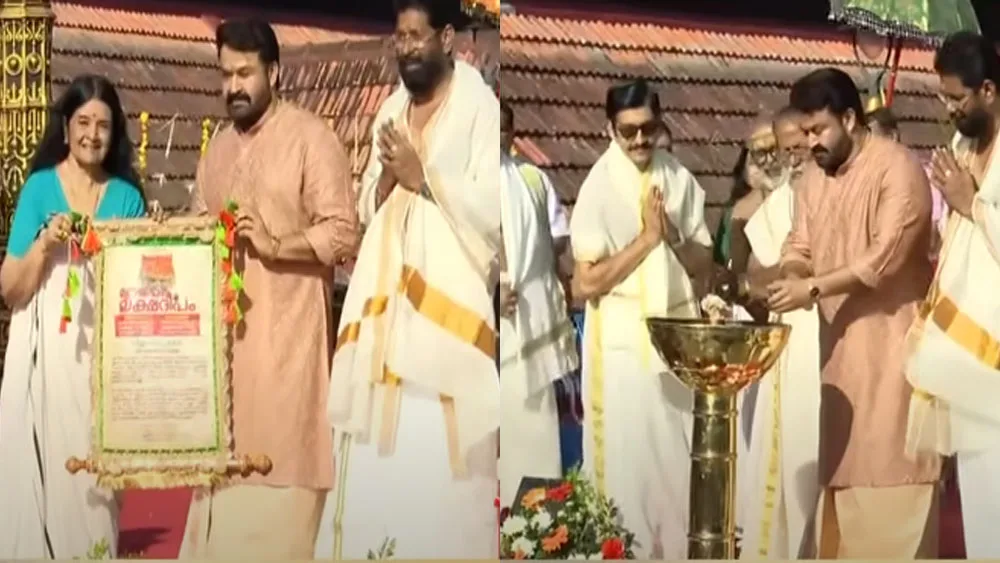 തിരുവനന്തപുരം: ശ്രീപദ്മനാഭസ്വാമി ക്ഷേത്രത്തിലെ മുറജപം – ലക്ഷദീപം ചടങ്ങുകൾക്ക് തുടക്കം കുറിച്ചുകൊണ്ടുള്ള വിളംബര പത്രിക നടൻ മോഹൻലാൽ സ്വീകരിച്ചു. കിഴക്കേനടയിൽ നടന്ന ചടങ്ങിൽ തിരുവിതാംകൂർ രാജകുടുംബാംഗങ്ങളാണ് മോഹൻലാലിന് വിളംബര പത്രിക കൈമാറി. മുറജപത്തിന്റെ ദീപസ്തംഭവും അദ്ദേഹം തെളിയിച്ചു.