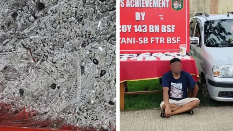 20 പാക്കറ്റുകളിലായി ഒളിപ്പിച്ച നിലയിലാണ് വെള്ളിയാഭരണങ്ങൾ കണ്ടെടുത്തത്. ബംഗ്ലാദേശിലുള്ള ഒരു കോൺട്രാക്ടറുടെ നിർദേശപ്രകാരമാണ് വെള്ളി കടത്തിയത്. കള്ളക്കടത്തുമായി ബന്ധപ്പെട്ട് 2021-ലും ഇയാളെ പിടികൂടിയിരുന്നതായി കണ്ടെത്തി. ഇന്ത്യ-ബംഗ്ലാദേശ് അതിർത്തി വഴി കള്ളക്കടത്ത് നടത്തുന്ന സംഘത്തിലെ പ്രധാനിയാണ് അറസ്റ്റിലായ യുവാവ്.