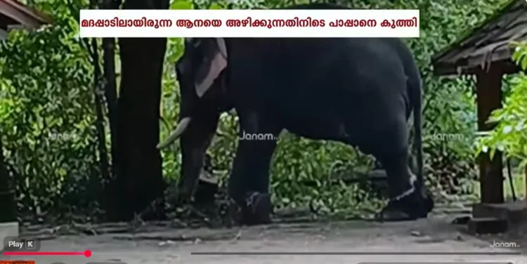ഹരിപ്പാട്: മദപ്പാടിലായിരുന്ന ആന അഴിക്കുന്നതിനിടെ പാപ്പാനെ കുത്തി പരിക്കേൽപ്പിച്ചു. ഹരിപ്പാട് സ്കന്ദനാണ് രണ്ടാം പാപ്പാൻ കരുനാഗപ്പള്ളി സ്വദേശി മണികണ്ഠനെ കുത്തിയത്. ഗുരുതരമായി പരുക്കേറ്റ മണികണ്ഠനെ തിരുവല്ലയിലെ സ്വകാര്യ ആശുപത്രിയിൽ പ്രവേശിപ്പിച്ചു. ആനയെ അഴിക്കാൻ മുകളിൽ കയറിയ പാപ്പാനെ കുലുക്കി താഴയിട്ട് കുത്തുകയായിരുന്നു.