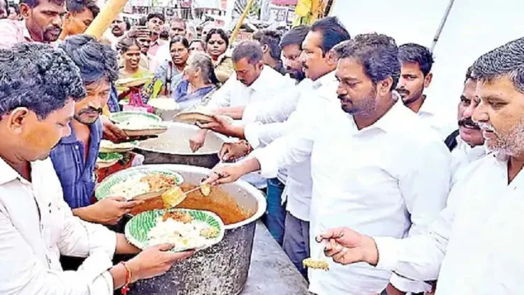 അമരാവതി: ഗണേശപ്പന്തലിന് സമീപത്ത് ചിക്കൻ ബിരിയാണി വിളമ്പിയ സംഭവത്തിൽ ജഗൻ റെഡ്ഡിയുടെ വൈഎസ്ആർ കോൺഗ്രസ് പ്രവർത്തകർക്കെതിരെ കേസെടുത്തു. മുൻ മുഖ്യമന്ത്രി രാജശേഖര റെഡ്ഡിയുടെ ചരമവാർഷികം ആചരിക്കുന്നതിനിടെയാണ് സംഭവം. ആന്ധ്രാപ്രദേശിലെ എൻടിആറിലുള്ള ഗണേശപന്തലിന് സമീപത്താണ് മാംസാഹാരം വിളമ്പിയത്. സംഭവത്തിൽ പ്രതിഷേധിച്ച് നിരവധി വിശ്വാസികൾ രംഗത്തെത്തി.