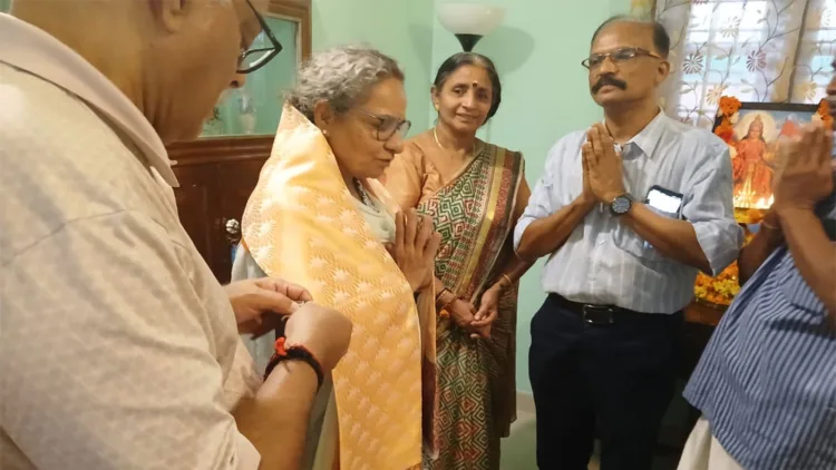 ദമ്പതികളെ യോഗത്തിൽ വച്ച് കൊച്ചി മഹാനഗർ കാര്യവാഹ് വി. എസ്.രമേശ് പൊന്നാട അണിയിച്ച് ആദരിച്ചു.