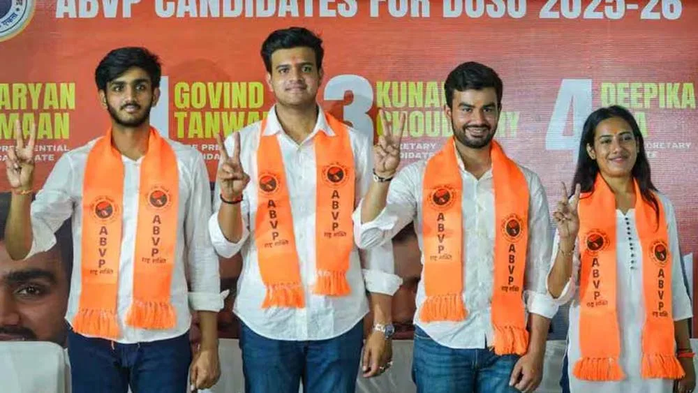 ന്യൂഡൽഹി: ഡൽഹി സർവകലാശാല വിദ്യാർത്ഥി യൂണിയൻ തെരഞ്ഞെടുപ്പിൽ എബിവിപി മുന്നിൽ. വോട്ടെണ്ണൽ പുരോഗമിക്കുമ്പോൾ പ്രസിഡന്റ് സ്ഥാനത്തേക്ക് മത്സരിക്കുന്ന എബിവിപി നേതാവ് ആര്യൻ മാനിന് ലീഡ് നില ഉയരുകയാണ്. കോൺഗ്രസ് വിദ്യാർത്ഥി സംഘടനയായ എൻഎസ് യുഐയ്ക്ക് കുറഞ്ഞ ലീഡാണുള്ളത്.