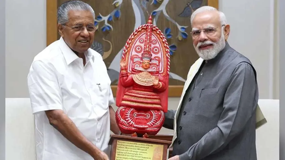 കൂടിക്കാഴ്ചയിൽ മലബാറിലെ പ്രശസ്തമായ ഭൈരവൻ തെയ്യത്തിന്റെ ശിൽപം മുഖ്യമന്ത്രി പ്രധാനമന്ത്രിക്ക് സമ്മാനിച്ചു. ഭൈരവൻ തെയ്യത്തിന്റെ പ്രാധാന്യത്തെ കുറിച്ചും പ്രത്യേകതകളെ കുറിച്ചും പ്രധാനമന്ത്രിയോട് വിവരിക്കുകയും ചെയ്തു.