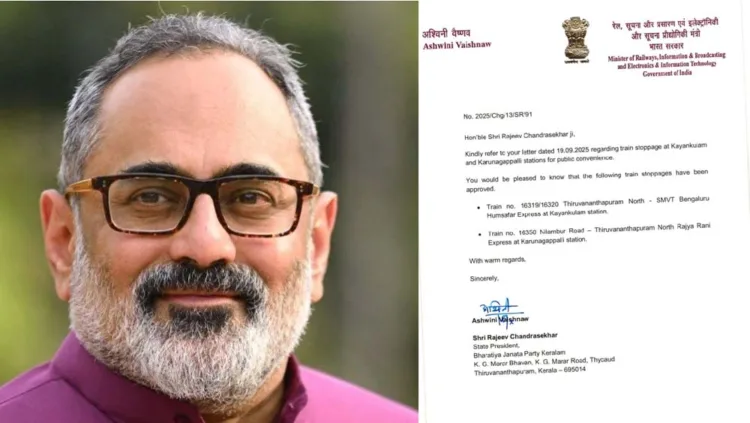 ട്രെയിന് നമ്പര് 16350 നിലമ്പൂര് റോഡ് – തിരുവനന്തപുരം നോര്ത്ത് രാജ്യറാണി എക്സ്പ്രസ് കരുനാഗപ്പള്ളി സ്റ്റേഷനിലും നിര്ത്തും. രാജീവ് ചന്ദ്രശേഖര് നിവേദനം നല്കിയതിനെ തുടര്ന്നാണ് കേന്ദ്ര റെയില്വേ മന്ത്രി അശ്വിനി വൈഷ്ണവ് പുതിയ സ്റ്റോപ്പുകള് അനുവദിച്ചത്.