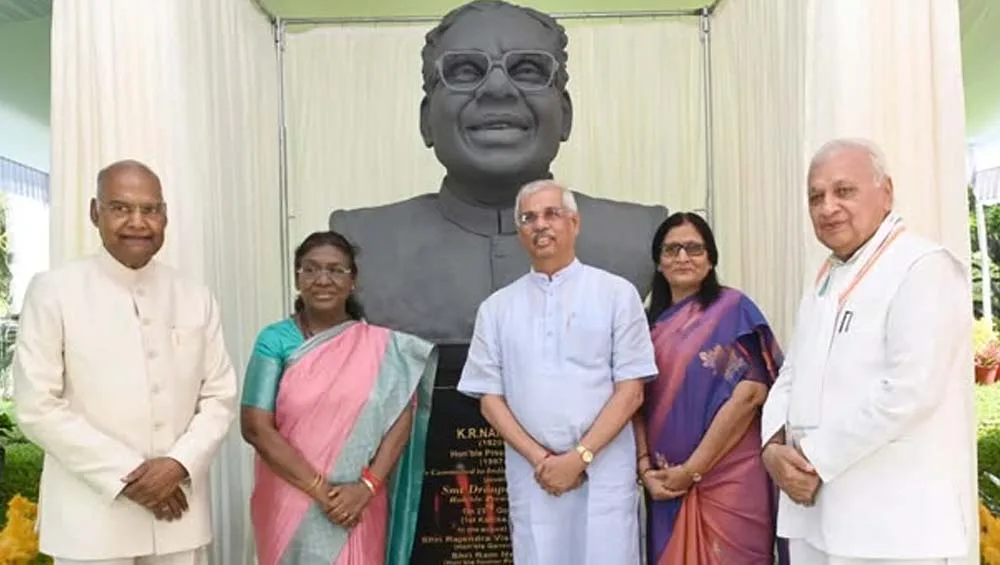 തിരുവനന്തപുരം: നാല് ദിവസത്തെ സന്ദർശനത്തിനായി കേരളത്തിലെത്തിയ രാഷ്‌ട്രപതി ദ്രൗപദി മുർമു മുൻ രാഷ്‌ട്രപതി കെ ആർ നാരായണന്റെ പ്രതിമ അനാച്ഛാദനം ചെയ്തു. പ്രതിമ അനാവരണം ചെയ്ത ശേഷം രാഷ്‌ട്രപതി പുഷ്പാർച്ചന നടത്തി. മുൻ രാഷ്‌ട്രപതി റാംനാഥ് ​കോവിന്ദ്, ​ഗവർണർ രാജേന്ദ്ര അർലേക്കർ, മുൻ ​ഗവർണർ ആരിഫ് മുഹമ്മദ് ഖാൻ എന്നിവർ അനാവരണ ചടങ്ങിൽ പങ്കെടുത്തു.