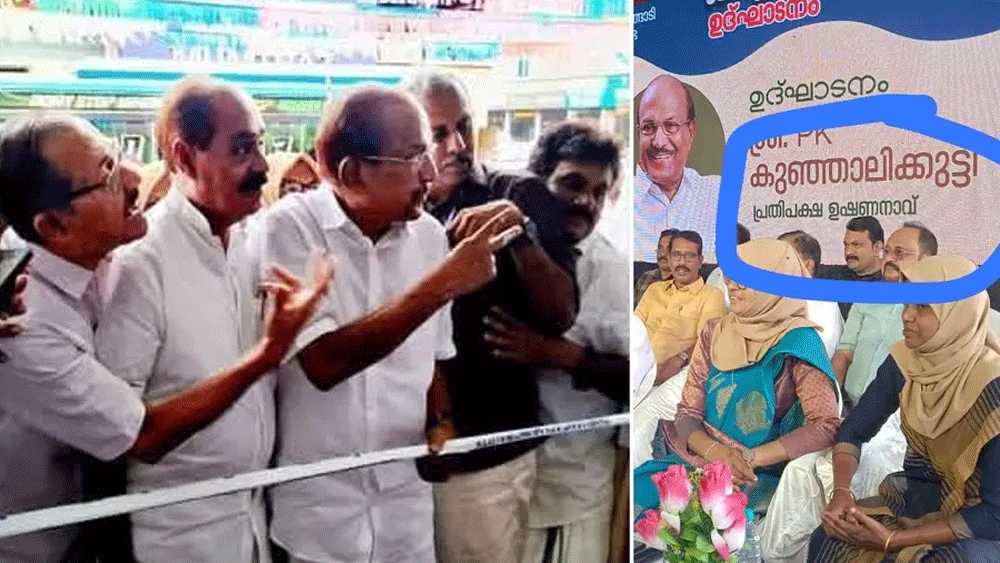 സ്റ്റേജിൽ എത്തിയപ്പോൾ അവിടെയും പി കെ കുഞ്ഞാലിക്കുട്ടിക്ക് പണികിട്ടി. പ്രതിപക്ഷ ഉപനേതാവ് എന്നതിന് പകരം പ്രതിപക്ഷ ”ഉഷണനാവ്’ എന്നാണ് എൽഇഡി വാളിൽ എഴുതിയിരുന്നത്. ചടങ്ങിൽ നിന്നും ദൃശ്യങ്ങൾ സോഷ്യൽ മീഡിയയിൽ വൈറലാണ്.