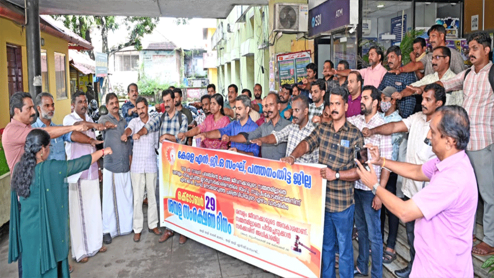 സംസ്ഥാന വ്യാപകമായി നടന്ന ശമ്പള സംരക്ഷണ ദിനാചരണത്തിന്റെ ഭാഗമായി പത്തനംതിട്ട മിനി സിവിൽ സ്റ്റേഷനിൽ നടന്ന പരിപാടി സംസ്ഥാന ജനറൽ സെക്രട്ടറി എസ്.രാജേഷ് ഉദ്ഘാടനം ചെയ്തു. വനിതാ വിഭാഗം ജില്ലാ പ്രസിഡന്റ് സന്ധ്യ പി.എം. പ്രതിജ്ഞ ചൊല്ലി കൊടുത്തു. ജില്ലാ പ്രസിഡന്റ് എൻ.ജി. ഹരീന്ദ്രൻ അധ്യക്ഷത വഹിച്ചു. സംസ്ഥാന എക്സിക്യൂട്ടീവ് അംഗം എസ്. ഗിരീഷ് സംസ്ഥാന സമിതി അംഗങ്ങളായ പി. അനിൽകുമാർ, ജി. അനീഷ് എന്നിവർ പ്രസംഗിച്ചു.ജില്ലാ സെക്രട്ടറി എം. രാജേഷ് സ്വാഗതവും,ജില്ലാ ട്രഷറർ പി. ആർ.രമേശ് നന്ദിയും പറഞ്ഞു.