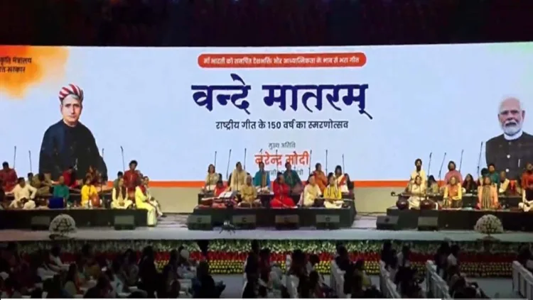 ന്യൂഡൽഹി : ദേശീയ ഗീതമായ വന്ദേ മാതരത്തിന്റെ 150-ാം വാര്ഷികത്തിൽ ഒരു വർഷം നീണ്ടുനിൽക്കുന്ന ആഘോഷപരിപാടികൾക്ക് തുടക്കമായി. പ്രധാനമന്ത്രി നരേന്ദ്രമോദി നാണയവും സ്റ്റാമ്പും പുറത്തിറക്കി ആഘോഷ പരിപാടികൾ ഉദ്ഘാടനം ചെയ്തു.. രാവിലെ 9.50ന് ഡൽഹിയിലെ ഇന്ദിരാഗാന്ധി ഇൻഡോർ സ്റ്റേഡിയത്തിൽ ഗാനാലാപനത്തിന് പ്രധാനമന്ത്രി നേതൃത്വം നൽകി.