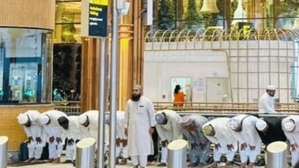 ബെംഗളൂരുവിലെ കെംപഗൗഡ അന്താരാഷ്ട്ര വിമാനത്താവളത്തിൽ നിന്നുള്ള നിസ്കാര വീഡിയോ സോഷ്യൽ മീഡിയയിൽ. ടെർമിനൽ 2-ൽ ഒരു കൂട്ടം പുരുഷൻമാർ നിസ്കരിക്കുന്ന ദൃശ്യങ്ങളാണ് പുറത്തുവന്നത്. ഇതെല്ലാം കണ്ടുകൊണ്ട് മിണ്ടാതെ നിൽക്കുന്ന വിമാനത്താവള ജീവനക്കാരെയും സുരക്ഷാ ഉദ്യോഗസ്ഥരെയും ദൃശ്യങ്ങളിൽ കാണാം.