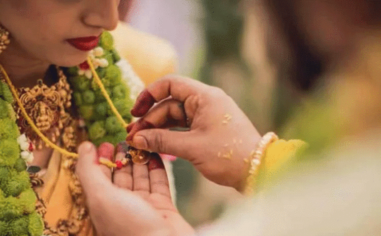 ഹൈന്ദവ വിശ്വാസപ്രകാരം വരൻ വധുവിന്റെ കഴുത്തിലണിയുന്ന താലിയ്ക്ക് മഹത്വങ്ങളേറെയാണ്. അതുകൊണ്ടുതന്നെ ഭർത്താവിന്റെ വിയോഗം വരെ ഭാര്യയുടെ കഴുത്തിൽ താലി വേണമെന്നാണ് വിശ്വാസം. താലിയെ മഞ്ഞ ചരടിൽ കോർത്ത് കെട്ടുന്ന പതിവിൽ നിന്നും വ്യത്യസ്തമായി സ്വർണമാലയിൽ താലി ചാർത്തുന്ന രീതിയും ഇന്ന് പ്രചാരത്തിലുണ്ട്.
