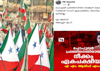 എൻഐഎ പരിശോധന ഏകപക്ഷീയമെന്ന് ആരിഫ് എംപി;പരാമർശത്തെ പിന്തുണച്ച് പോപ്പുലർഫ്രണ്ട് ,രഹസ്യഗ്രൂപ്പുകളിലും ആരിഫിന് ജയ് വിളി