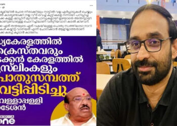 വെള്ളാപ്പള്ളി നടേശനെതിരെ അശ്ലീല പരാമർശം നടത്തിയ ഇസ്ലാമിക് ആക്ടിവിസ്റ്റ് ആബിദ് അടിവാരത്തിനെതിരെ കേസ് എടുക്കണമെന്ന് ആവശ്യപ്പെട്ട് ബിജെപി സംസ്ഥാന വക്താവ് സന്ദീപ് വാചസ്പതി. കേരളത്തിലെ ഏറ്റവും പ്രബല ...
