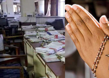 സർക്കാർ ഓഫീസിൽ ‘നെഗറ്റീവ് എനർജിയെ’ പുറന്തള്ളാൻ ളോഹയും ബൈബിളുമായെത്തി പ്രാർത്ഥന; സംഭവം തൃശൂർ കളക്ടറേറ്റിനുള്ളിൽ