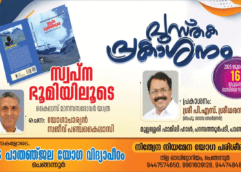 ചെങ്ങന്നൂർ: യോഗാചാര്യൻ സജീവ് പഞ്ചകൈലാസി രചിച്ച "സ്വപ്നഭൂമിയിലൂടെ കൈലാസ് മാനസസരോവർ യാത്ര" എന്ന പുസ്തകം ഗോവ ഗവർണർ പി. എസ് . ശ്രീധരൻ പിള്ള പ്രകാശനം ചെയ്യും. ...